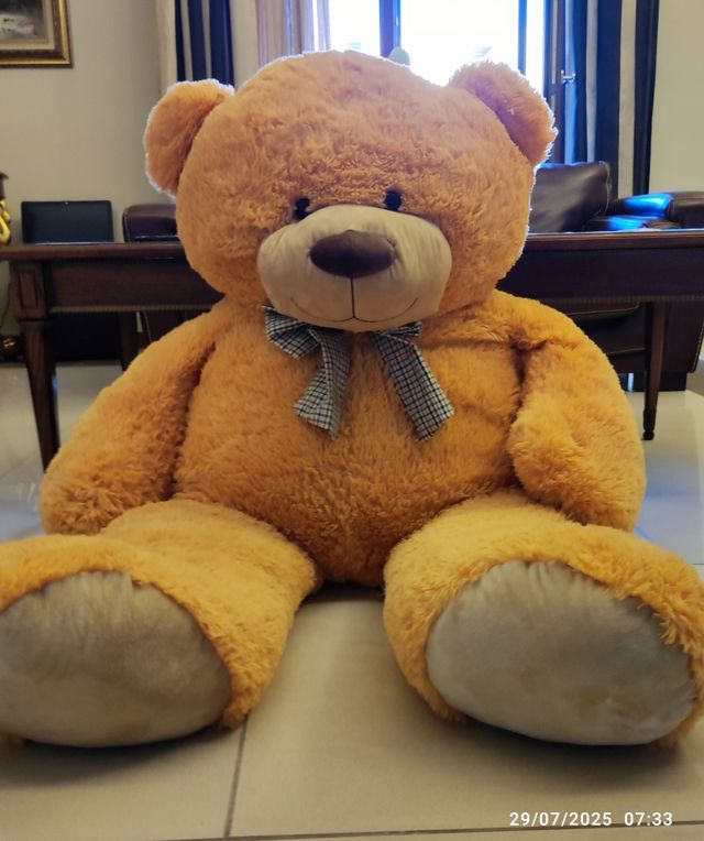 Bellissimo orso di peluche gigante, alto 135 cm. Perfetto per un regalo speciale o per coccolarsi sul divano. - Colore marrone chiaro - Pelo soffice e morbido - Fazzoletto al collo a quadri