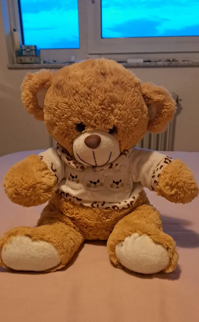 Dettagli del prodottoAdorabile orso di peluche marrone, perfetto da abbracciare. Indossa una maglietta con un design carino. Materiale morbido e soffice. Design di orsetti sulla maglietta. Dettagli di stampa animalier sulla maglietta. La descrizione è stata tradotta automaticamente.