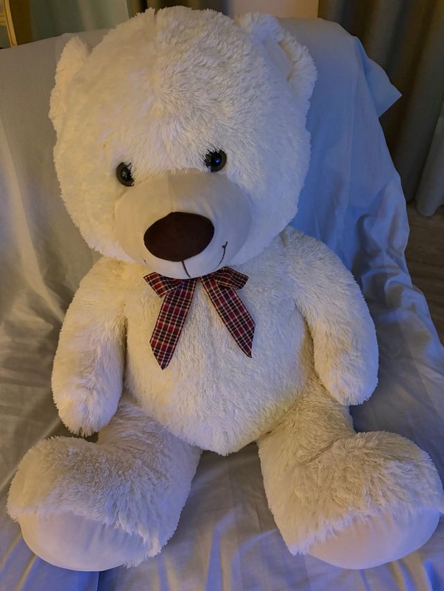 Dettagli del prodottoQuesto adorabile orso di peluche bianco è perfetto per abbracciare. È in buone condizioni e pronto per trovare una nuova casa. Morbido e soffice, di colore bianco, con fiocco a quadri sul collo. La descrizione è stata tradotta automaticamente.