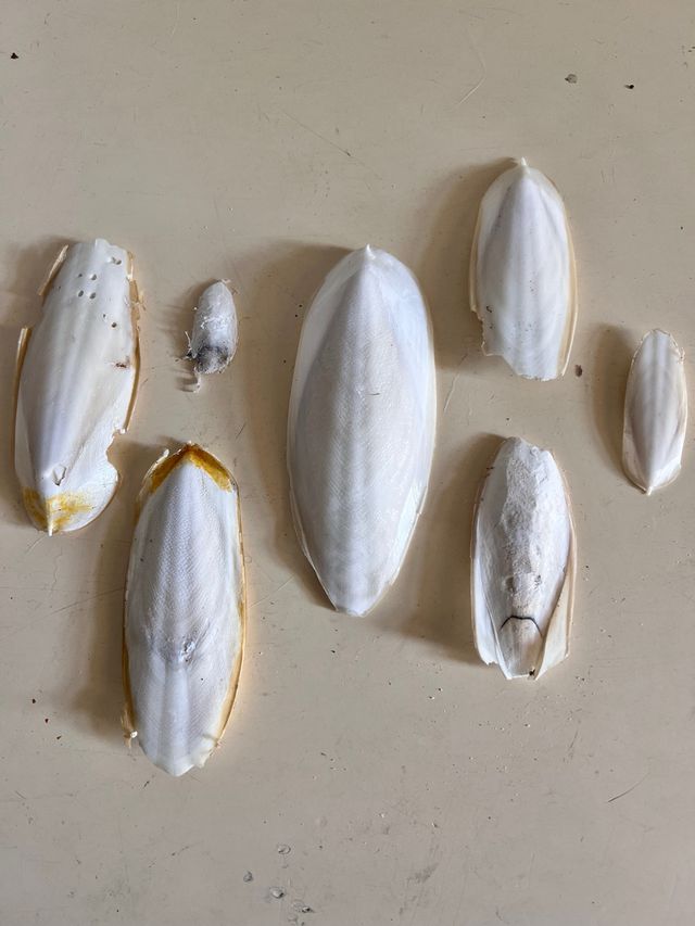 Dettagli del prodottoSet di 7 ossi di seppia naturali, perfetti per acquari o collezioni. Sono di varie dimensioni e in buone condizioni, alcuni mostrano lievi segni di usura.