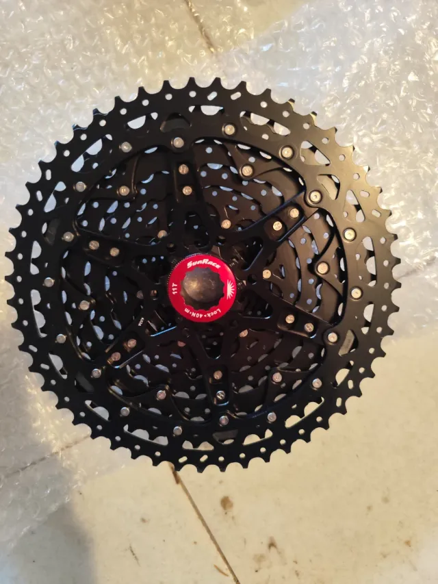 Pacco pignoni Sunrace per bicicletta, colore nero. - Compatibile con trasmissioni 11-velocità. - Rapporto pignoni: 11-51T. - Design leggero e resistente.