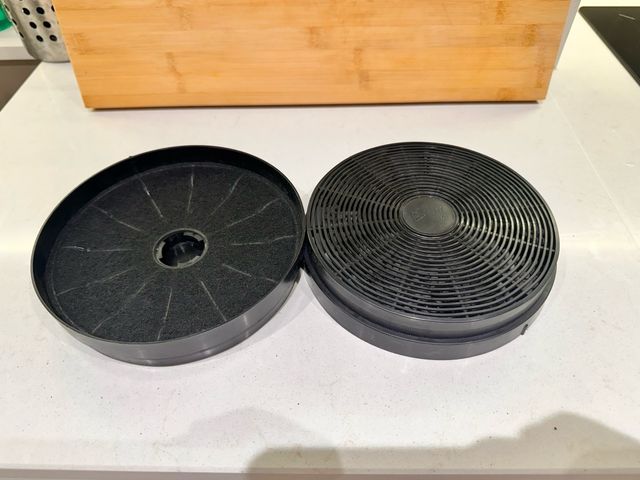 Dettagli del prodottoConfezione da 2 nuovi filtri a carbone attivo - Cappa Corbero Vendo confezione da 2 nuovi filtri a carbone attivo, compatibili con cappe aspiranti Corbero. Ideali per cappe in modalità ricircolo, aiutano a eliminare odori e fumi dalla cucina. 🔹 Stato: nuovi, non usati 🔹 Include: 2 filtri 🔹 Tipo: filtro a carbone attivo 🔹 Forma: rotondi, con incastro centrale 🔹 Compatibilità: cappe Corbero (e altri modelli compatibili dello stesso diametro) La descrizione è stata tradotta automaticamente.Misure del prodotto