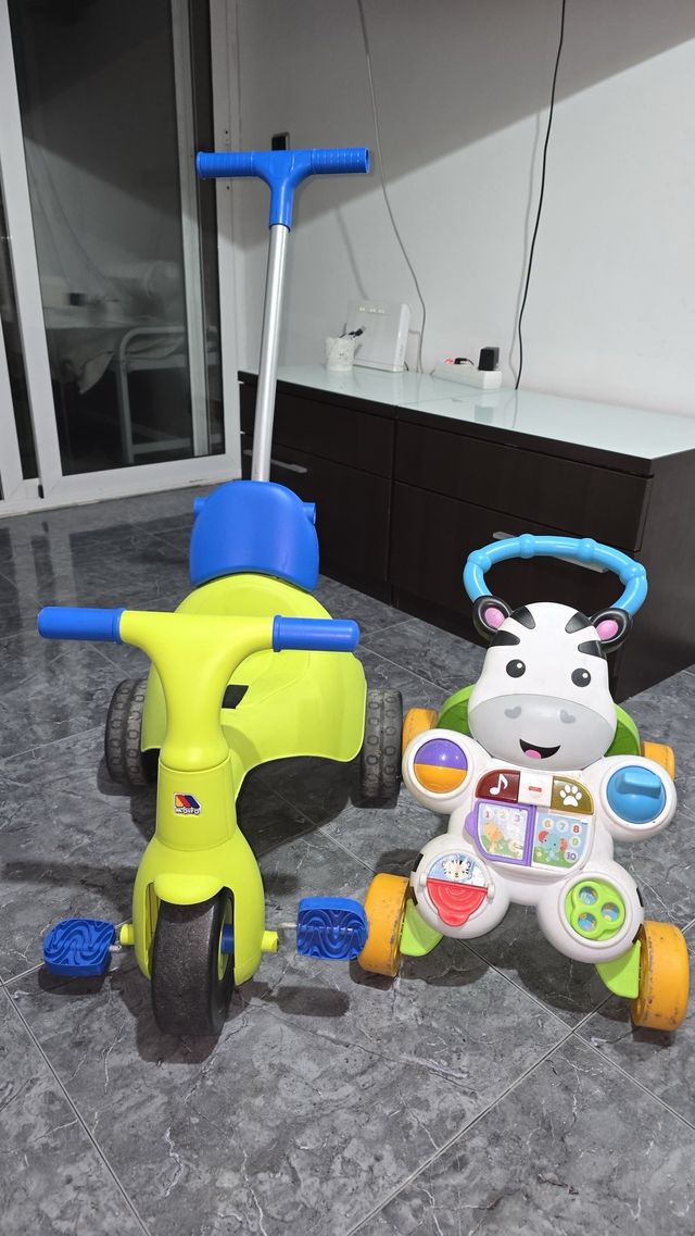 Dettagli del prodottoConfezione da due giocattoli per bambini per i più piccoli. Include un deambulatore a forma di zebra e un triciclo.