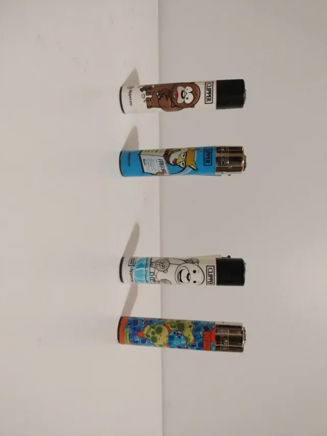 4 Accendini Clipper da ricaricare con diverse fantasie.