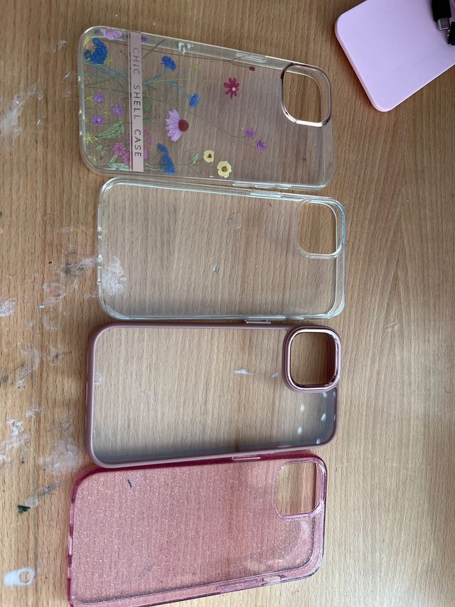 Dettagli del prodottoConfezione di quattro custodie per iPhone 13. - Custodia trasparente con fiori secchi. - Custodia trasparente liscia. - Custodia trasparente con bordo rosa e design di cervo. - Custodia rosa brillante. La descrizione è stata tradotta automaticamente.