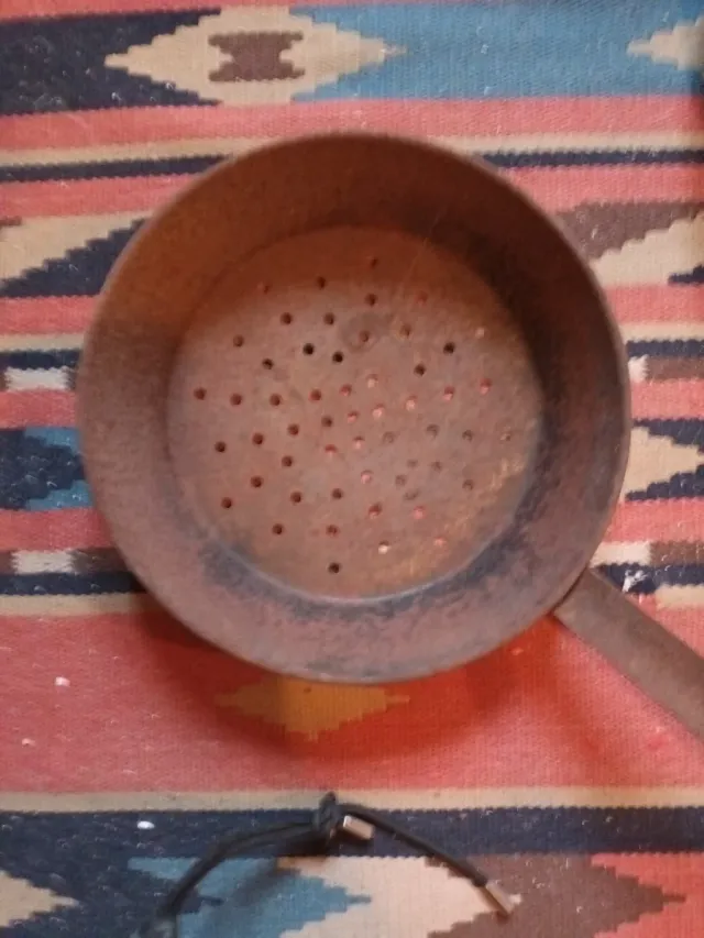 Padella vintage per caldarroste, ideale per tostare. Ideale per decorazione casa - Realizzata in metallo. - Design con manico.