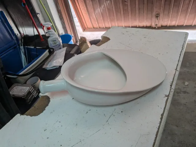 Padella sanitaria in ceramica, un pezzo d'epoca degli anni '50. - Materiale: ceramica. - Design vintage.