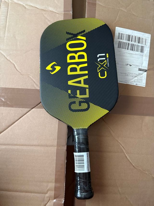 Racchetta di pickleball Gearbox CX11 Control. Design moderno in nero e giallo. Impugnatura con grip avvolto.