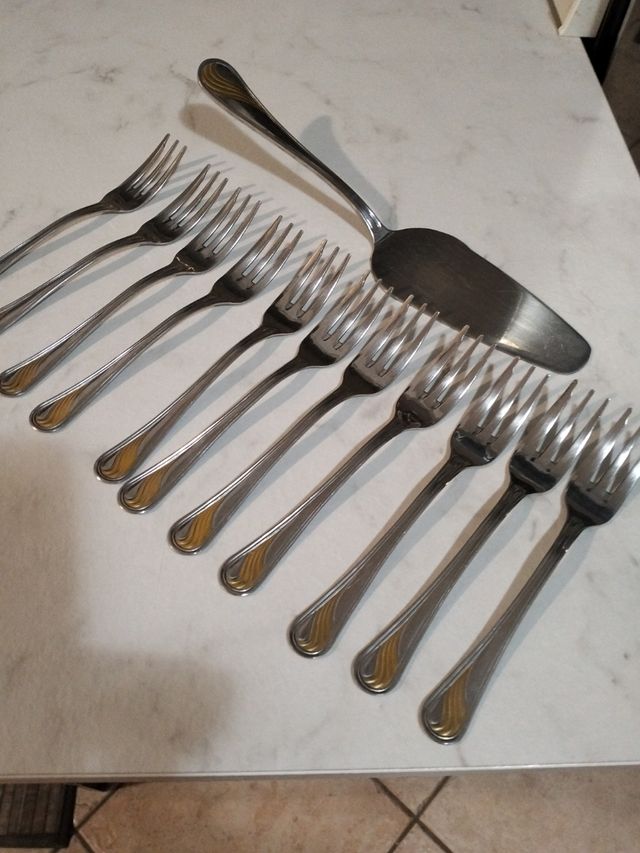 spatola e 11 forchette per dolci. acciaio inox 18/10