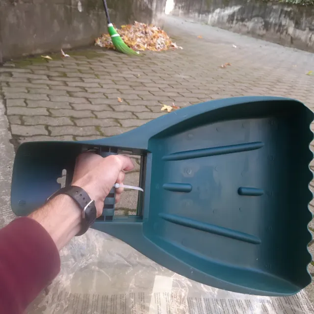 Dettagli del prodottoCoppia di palette per la raccolta delle foglie, utile per giardinaggio.