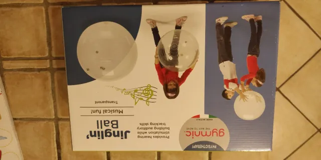 Dettagli del prodottoPalla sonora trasparente Gymnic, ideale per stimolare l'udito e la coordinazione visiva.
