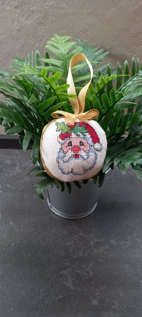 pallina da attaccare all'albero di Natale in stoffa e ricamata a mano in punto croce 7cm di diametro