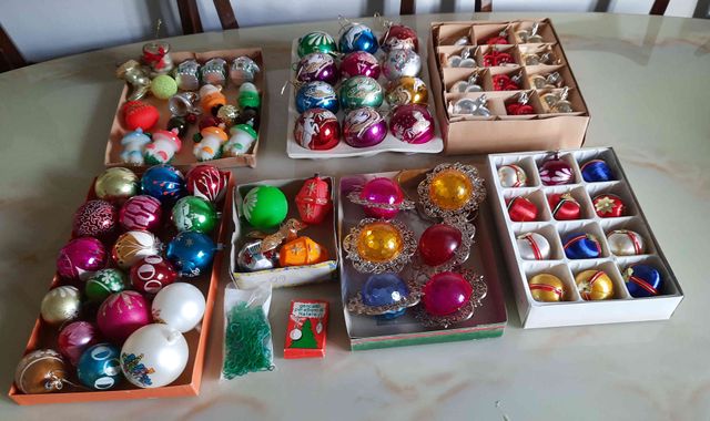 Dettagli del prodottoVendo assortimento di palline e punta rossa per albero di natale.