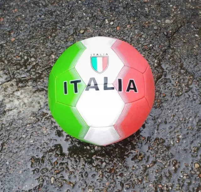 Pallone da calcio con i colori dell'Italia, mai utilizzato. - Design con stemma e scritta ITALIA. - Pannelli verdi, bianchi e rossi.