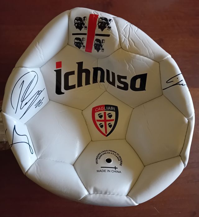 Dettagli del prodottoIl pallone presenta il logo Ichnusa (nota marca di birra sarda), il logo del Cagliari Calcio e la stampa degli autografi dei giocatori della rosa del 2018/2019. E' nuovo, non è mai stato usato ed è ancora da gonfiare. In dotazione anche l'ago per poterlo fare. Oggetto molto bello, in edizione limitata, da collezione.