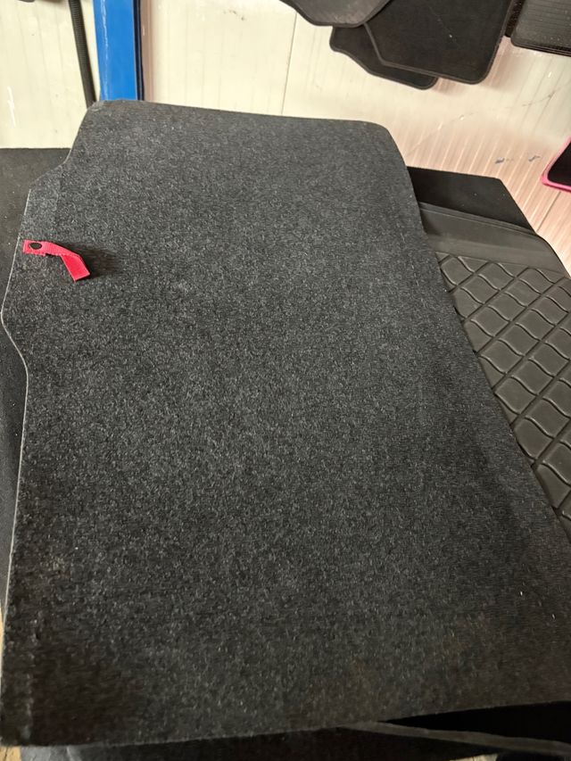 Pannello copri ruota di scorta per Fiat. - Materiale in feltro. - Colore grigio scuro. - Con linguetta di aggancio rossa.