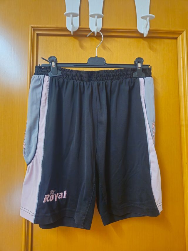 Buono statoDettagli del prodottoPantaloncini sportivi neri con inserti laterali grigi e rosa.