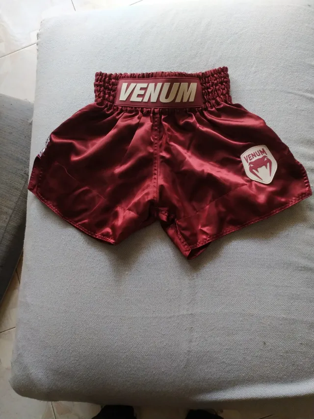 Pantaloncini da uomo della marca Venum. - Colore rosso bordeaux. - Logo Venum sul girovita e sul lato destro. - Tessuto satinato lucido.