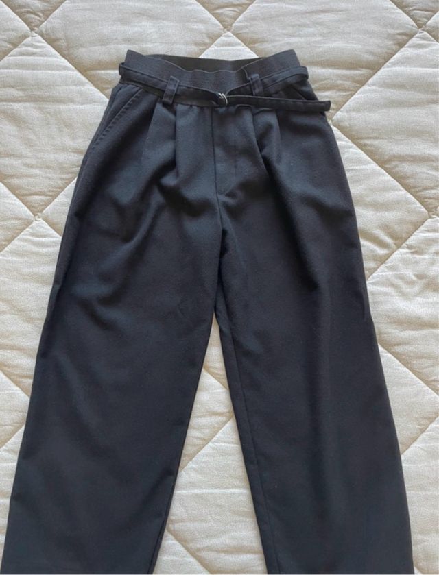 Pantalone a palazzo nero per bambina, con cintura. - Vita alta. - Tasche. - Cintura con fibbia.