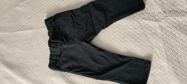 Pantalone per neonato di colore blu scuro. - Vita elasticizzata. - Chiusura con bottone. - Tessuto morbido.