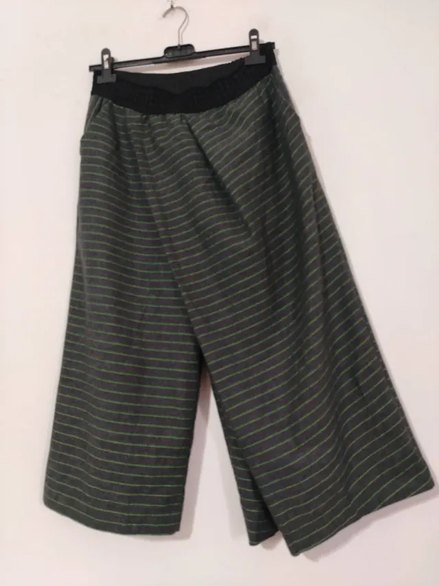 Pantaloni ampi grigi righe verdi taglia M