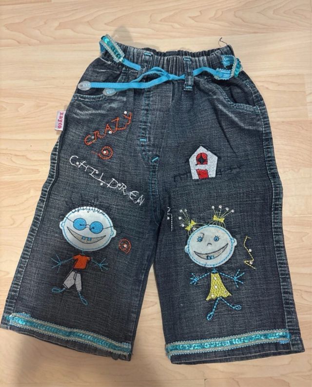 Dettagli del prodottoPantaloni in denim per bambina con dettagli divertenti.