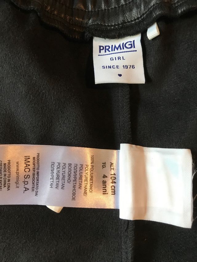 Pantaloni PRIMIGI in eco pelle da bambina. TG 4 anni. 104 cm. Nuovi. Mai indossati.