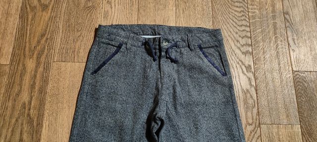 Dettagli del prodottoUsati pochissimo come nuovi. Pantaloni eleganti sale e pepe sul tono del blu scuro, TG. 13-14 anni (164cm) da bambino con passanti per la cintura in vita, elastico interno in vita (vedi foto), tasche laterali, tasche sul retro, risvolti cuciti sull'estremità inferiore di entrambe le gambe e tessuto 80% cotone e 20% poliestere.