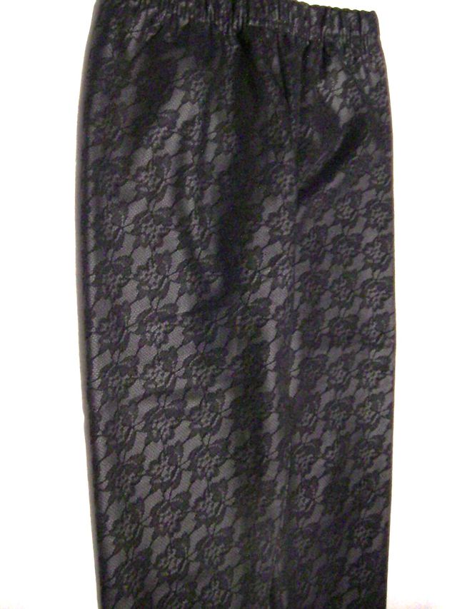 Pantaloni eleganti con fantasia floreale in similpelle,elasticizzati marchio "pink shel"condizioni pari al nuovo - Colore nero. - Vita elasticizzata.