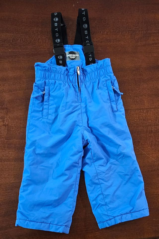 Pantaloni da sci per bambino di colore blu. -Taglia 92 cm - Bretelle regolabili con logo. - Chiusura con zip frontale. - Tasche laterali con zip.