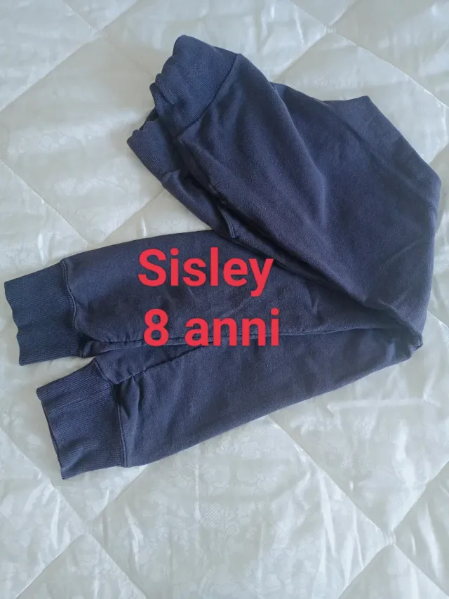 Pantaloni blu navy marca Sisley, taglia 8 anni. - Vita elasticizzata. - Polsini alla caviglia.