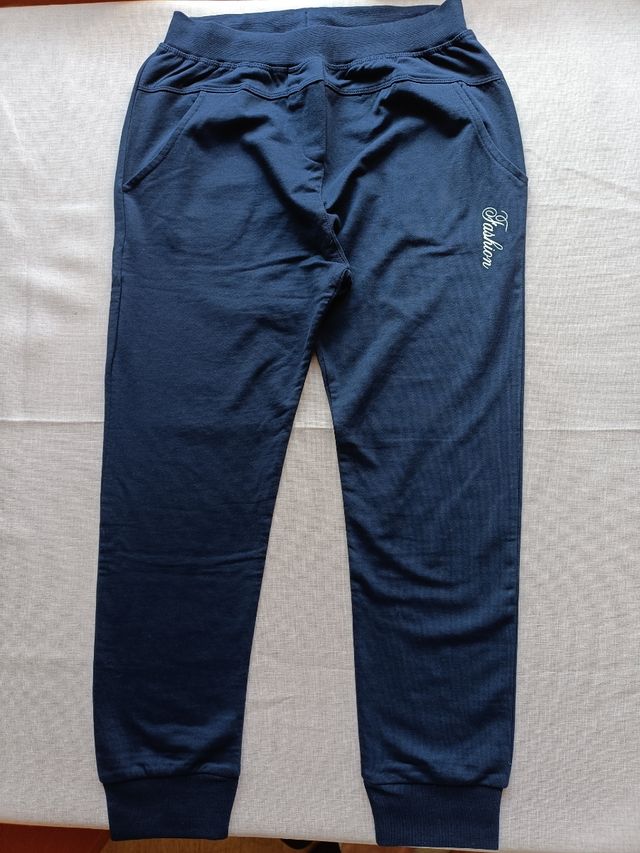 Pantaloni della tuta blu per bambina, taglia 12 anni. Marca Tandem - Vita elasticizzata. - Tasche laterali. - Scritta Fashion sul lato.