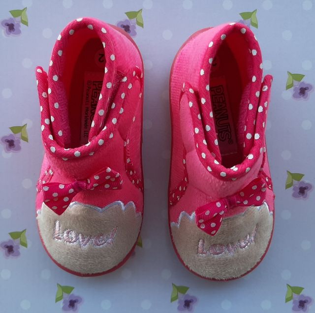 Graziose, morbide e calde con chiusure laterali a strappo e suola in gomma. Adatte per interno ed esterno. Misura 21-22. Marca Snoopy Peanuts.