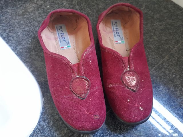 Comode pantofole da casa Fly Flot. - Colore rosso. - Materiale scamosciato. - Dettaglio a cuore sul davanti. - Made in Italy.