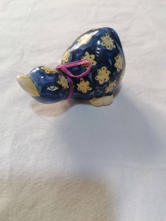 Graziosa papera in ceramica. Impacchetto con carta pallinata e quant'altro possa proteggere l'oggetto. Sempre in vetrina