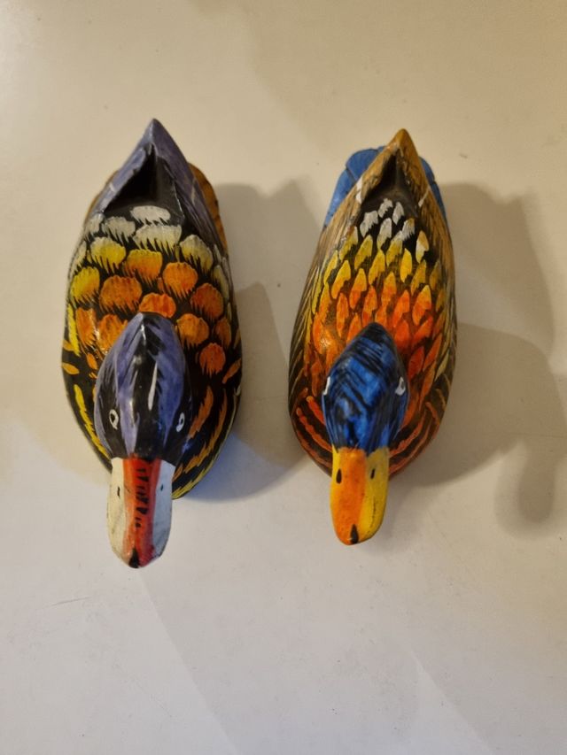 coppia di papere in legno decorate, dim 16x 6 x 8h
