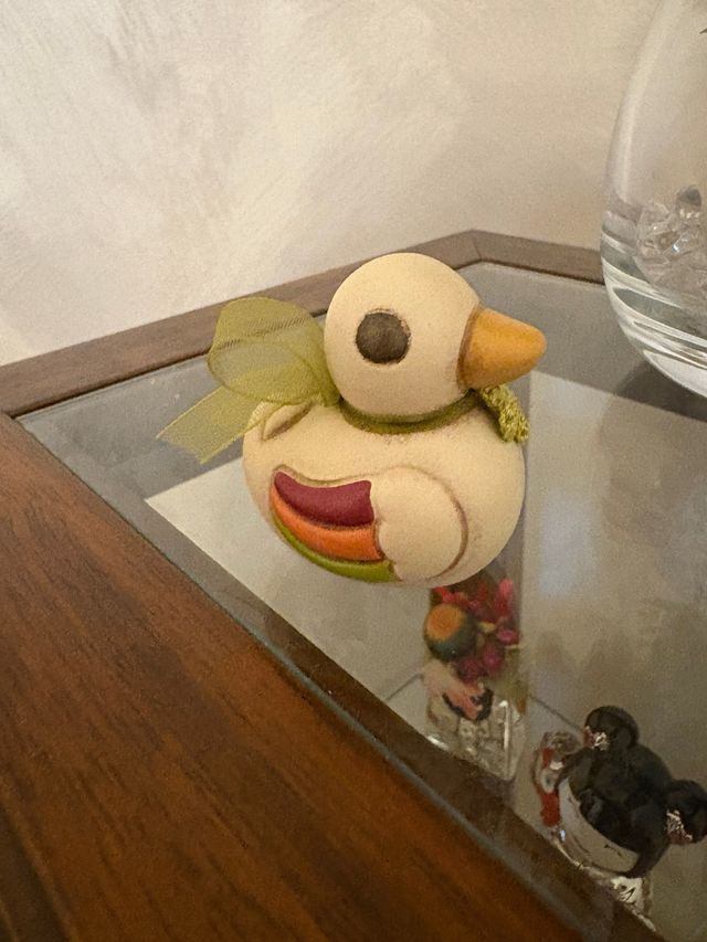 Simpatico Paperotto Thun con fiocchetto verde. - Decorazione colorata sul fianco.