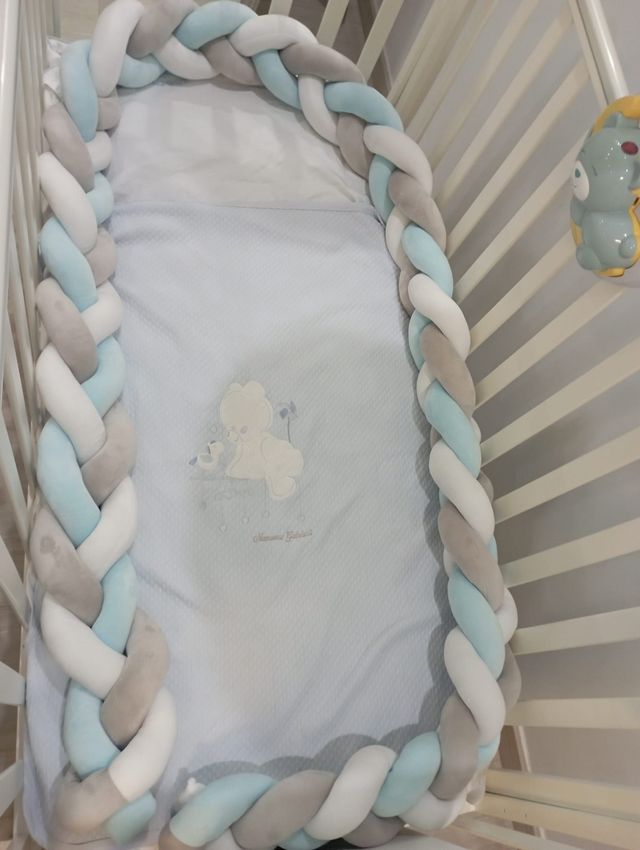 In ottime condizioni. Forma a treccia di colore bianco grigio e celeste. Lunghezza 3 metri