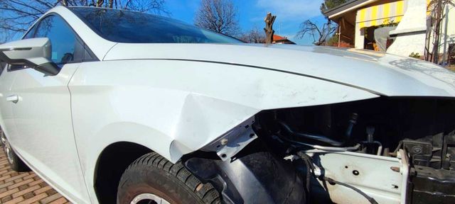 Parafango anteriore destro originale per SEAT Leon 5F (modelli 2012-2020), colore bianco pastello. Il pezzo presenta evidenti danni da incidente: è ammaccato in più punti, con crepe visibili. Ideale per chi cerca un ricambio economico da riparare o per uso provvisorio. Compatibile con tutte le versioni SEAT Leon Mk3 (5F), incluso FR e Style. Viene venduto nello stato in cui si trova, come visto in foto.