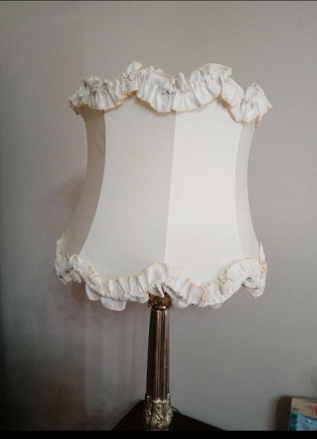 Paralume in seta. Scheletro in ferro con bordo in rouches. Vintage elegante di altri tempi. Piccoli ritocchi da fare nella vernice, per il resto impeccabile.