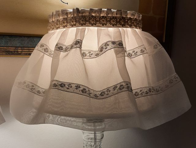 Bellissimi paralume in stile shabby ,rivestiti a mano in delicatissima organza con dettagli in pizzo valencennes. Attacco lampadina E14.