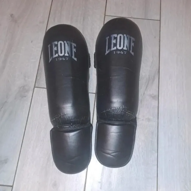 Parastinchi Leone 1947 in ecopelle nera taglia S - Logo Leone 1947 stampato. - Chiusura con velcro. - Imbottitura protettiva.