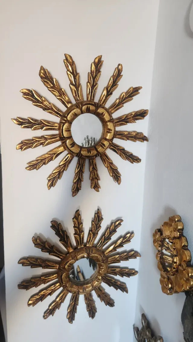 Coppia di antichi specchi a sole dorati