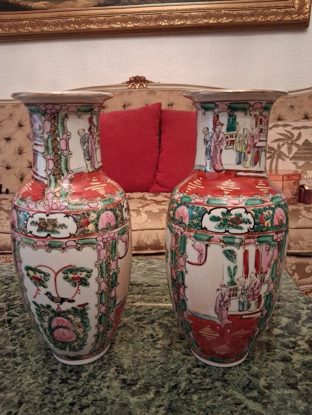 Coppia di vasi cinesi in porcellana Rose Canton