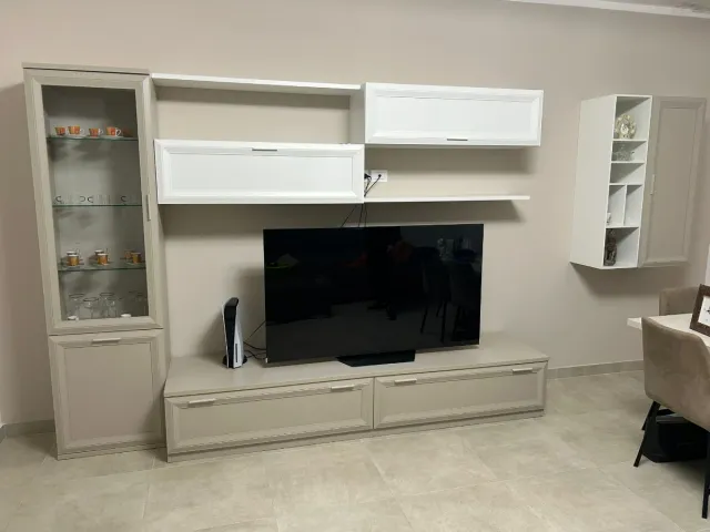 Parete attrezzata soggiorno beige e bianco