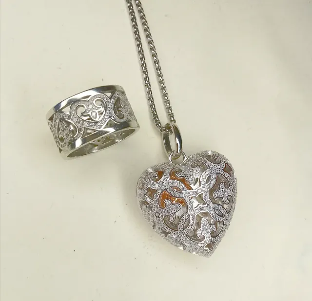 Parure Anello e Ciondolo Cuore Argento 925 Zirconi