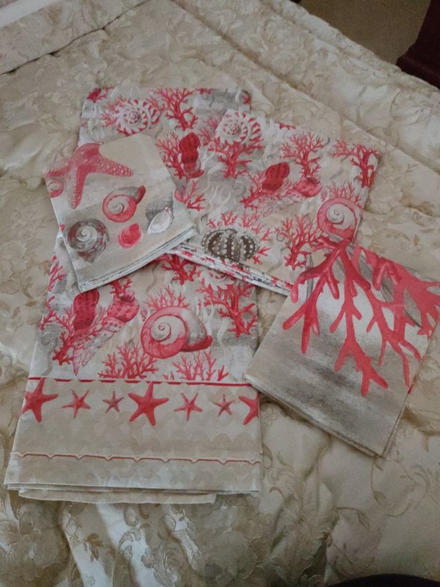 completo lenzuola matrimoniale. sotto con angoli federe doppio disegno come in foto usate solo da esposizione poi lavate e conservate. misure nell'ultima foto