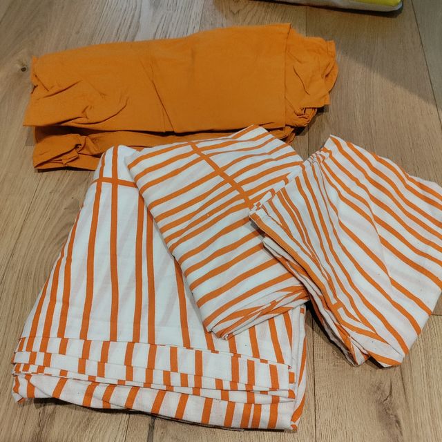 4 pezzi: due federe, sacco piumone e lenzuolo con angoli. Ottimo stato