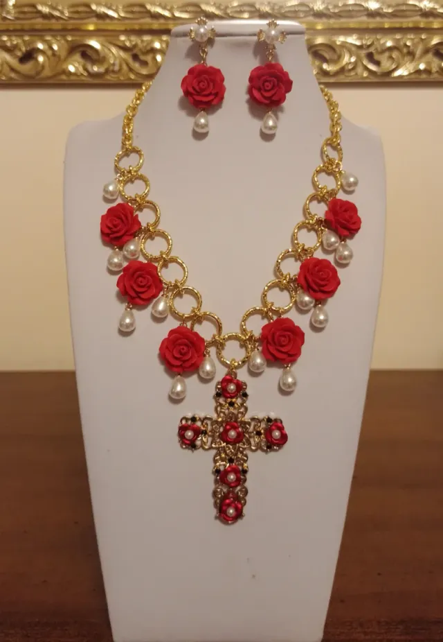 Parure retrò con rose e croce gioiello