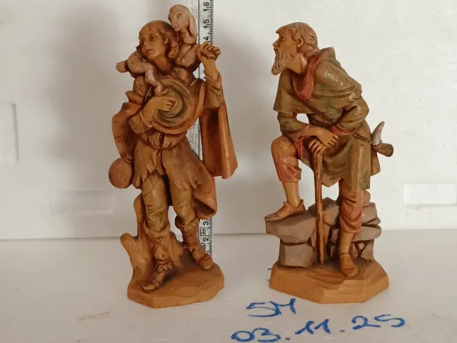 Dettagli del prodottoDue figure di pastori color legno per presepe, marca depose Fontanini numeri di serie 115 120 vintage anni 80 nuovi .